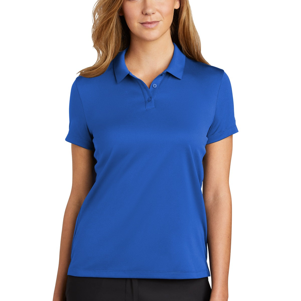 A no-nonsense look for any occasion, this must-have polo is built with Dri-FIT moisture management technology to help you stay dry, regardless of the venue. Design details include a self-fabric collar, dyed-to-match buttons and open hem sleeves. Tailored for a feminine fit with a three-button placket and side vents.A contrast Swoosh design trademark is embroidered on the left sleeve. Made of 4.5-ounce, 100% polyester Dri-FIT fabric.