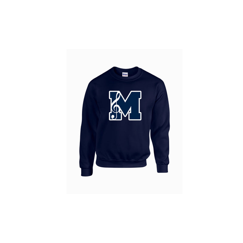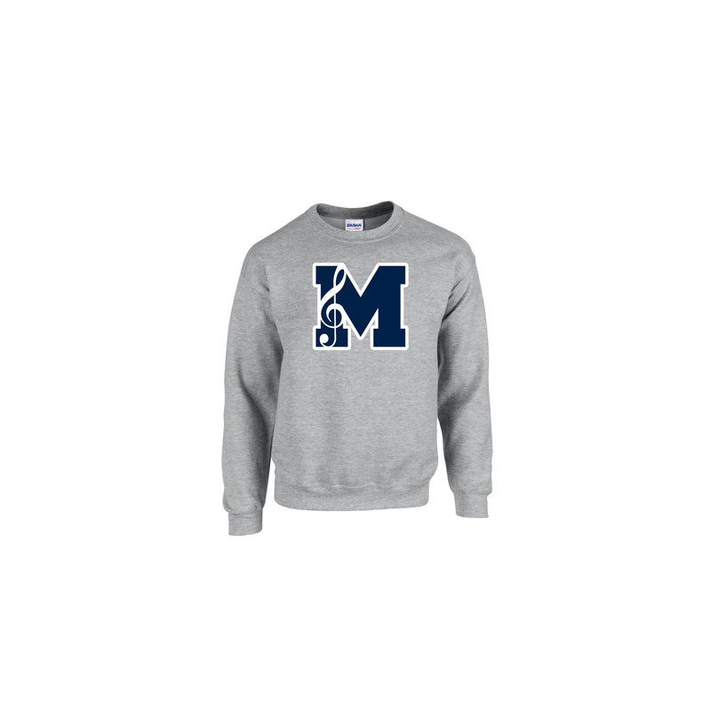 This Gildan 8 ounce sweatshirt, in a 50/50 cotton polyester blend, is perfect for those chilly fall nights! It is decorated with a 9 1/2” wide, custom printed, Marietta Band logo.