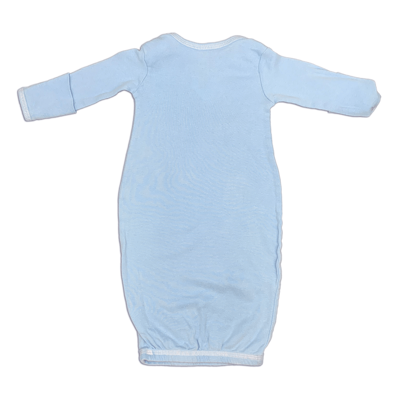 Ensure peaceful nights for your newborn with our cotton blue sleeping gown. Designed with hand mittens and an elastic hem, this gown provides gentle comfort and security. Perfect for easy diaper changes and keeping tiny hands warm, it’s an essential addition to any nursery.