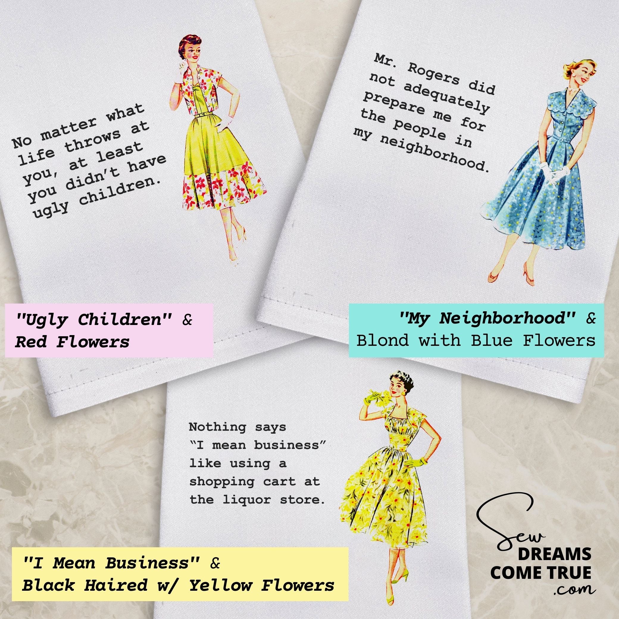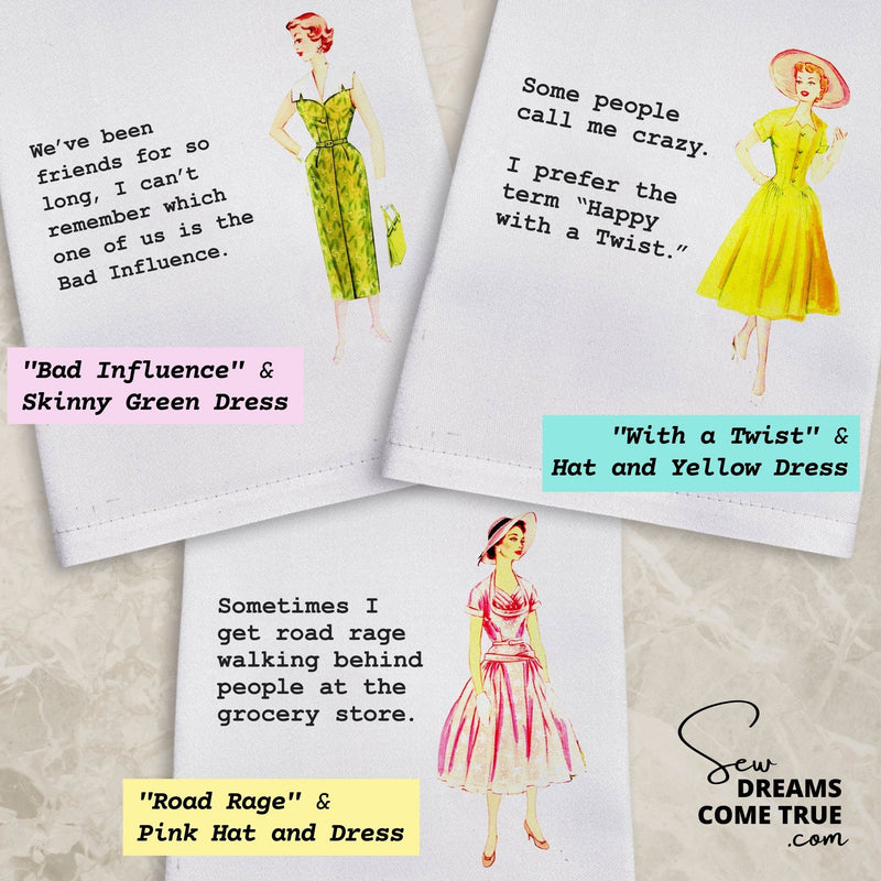 Ask, and it shall be given! One of our customers thought these were as funny as we did - so we decided to make them! Choose from 9 phrases and 9 hot 50's ladies for over 80 combinations that fit your personality just right.