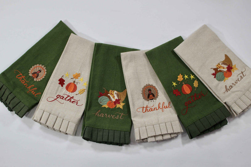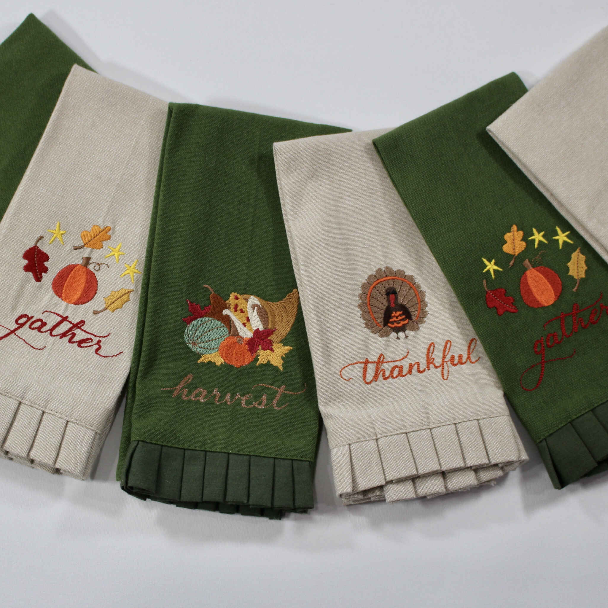 Decorate to the nines with a custom embroidered tea towel inspired by classic Thanksgiving icons. These add a little personal touch to a kitchen or even a washroom, just in time for the holidays.