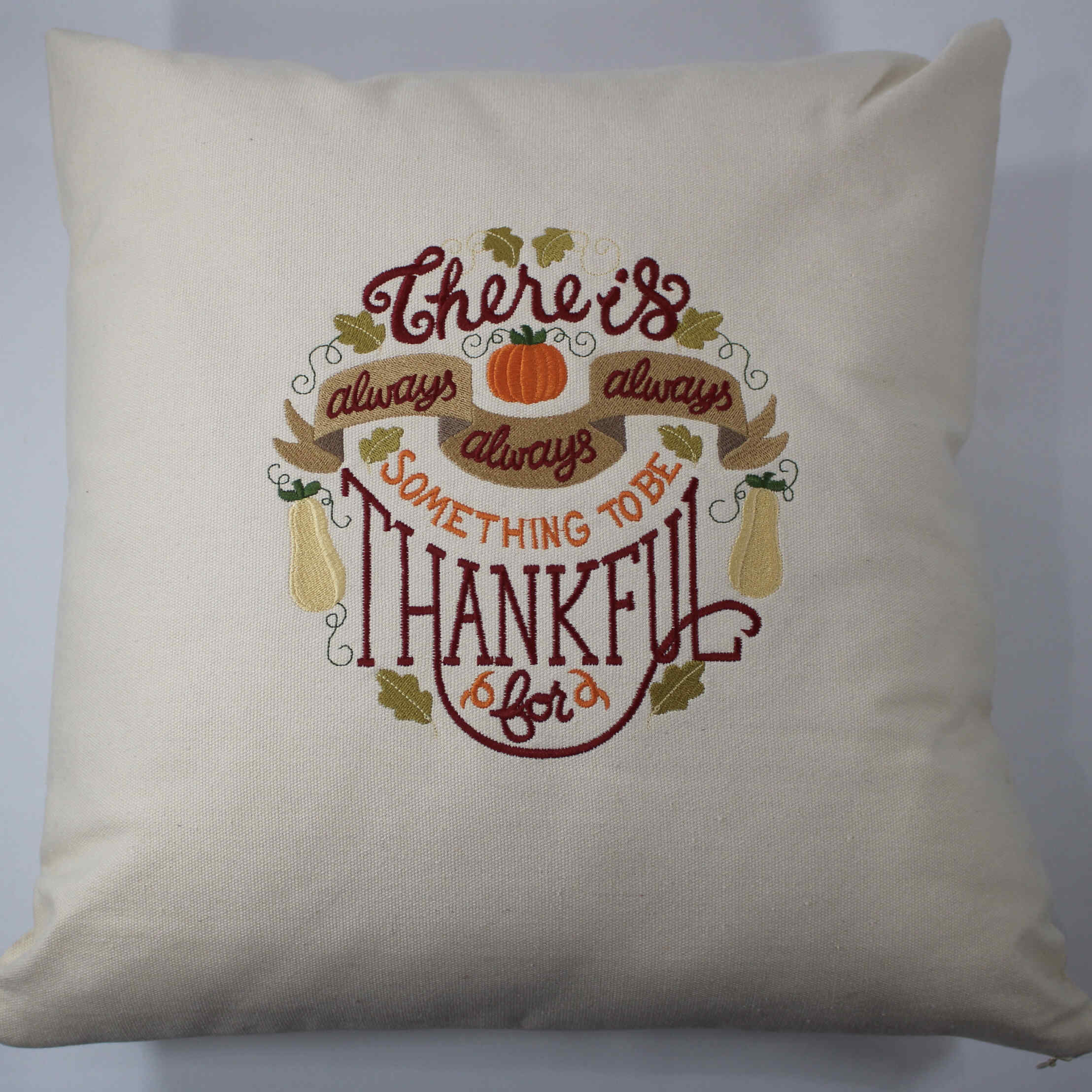 Embroidered Throw Pillow - "Something To Be Thankful For"
