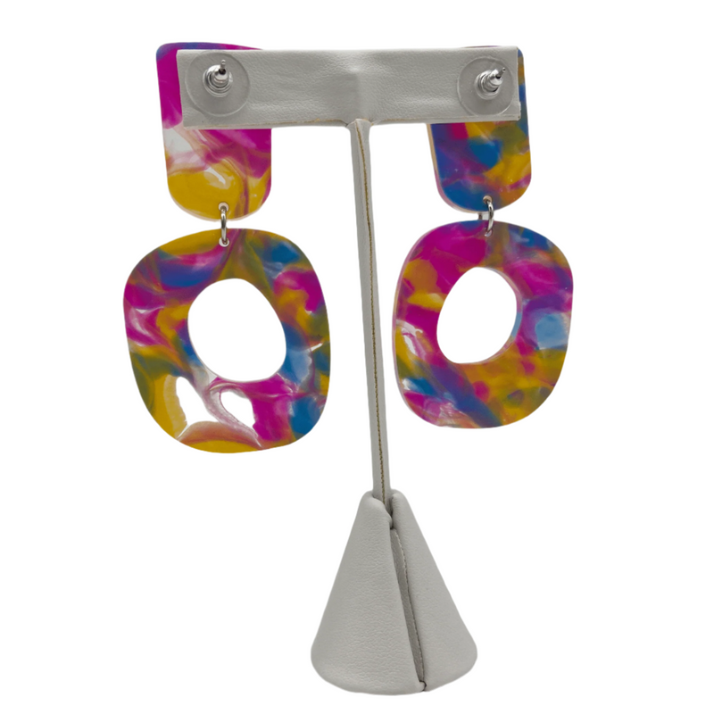 Groovy ready, these beautiful, acrylic earrings are destined to be the hit at your next disco get together!