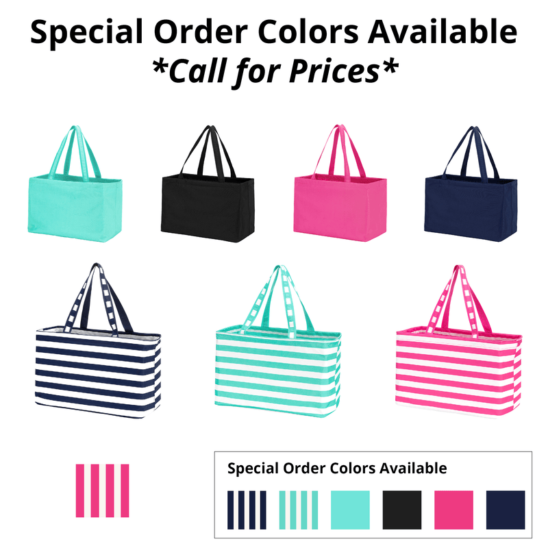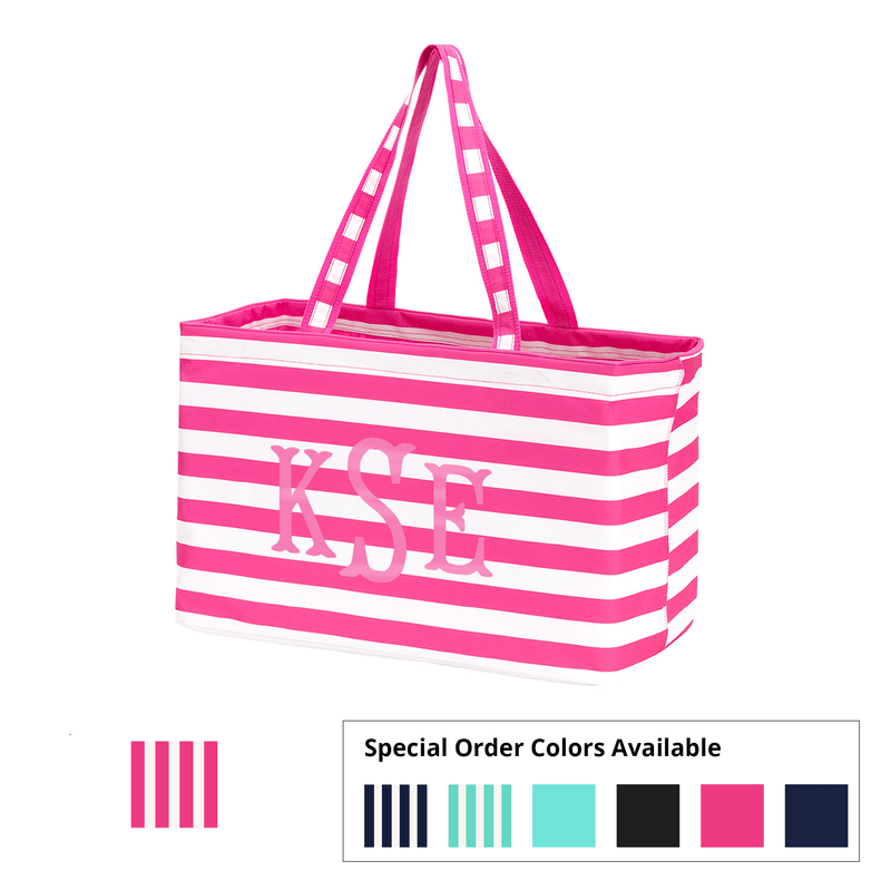The amazing Ultimate Tote style is now available in a fun hot pink and white striped pattern. This bag is perfect for tailgating, packing for weekend trips, fun days in the sun, and so much more! You will not want to pack with anything else. The six open pockets and one zippered pocket that line the inside and the long, easy-to-carry, handles make this the ultimate tote that carries all!