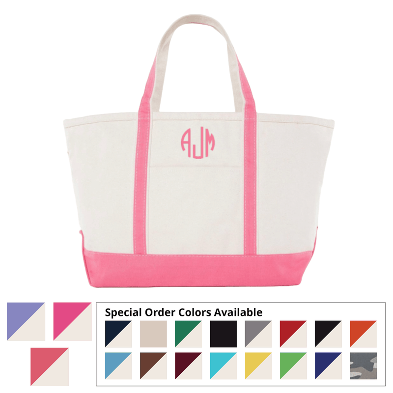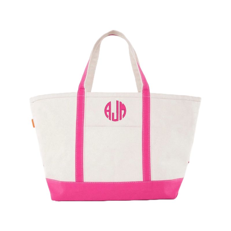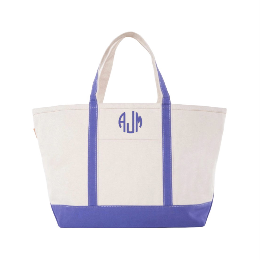 This large personalized tote bag from CB Station offers a chic blend of style and practicality. Choose from multiple color options, each with a personalized monogram for that extra touch. With its spacious design, top zipper, and large front pocket, you are sure to love this bag!