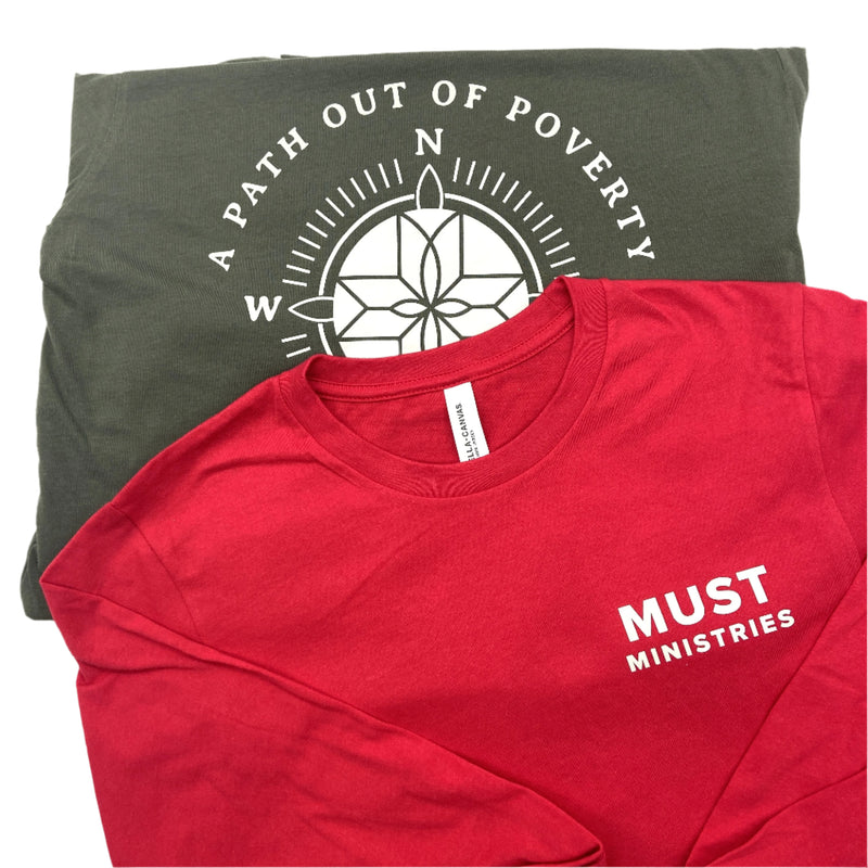 Join the cause and proudly wear the "A Path Out of Poverty" long sleeve T-Shirt from MUST Ministries. BELLA+CANVAS ® Unisex Jersey.
