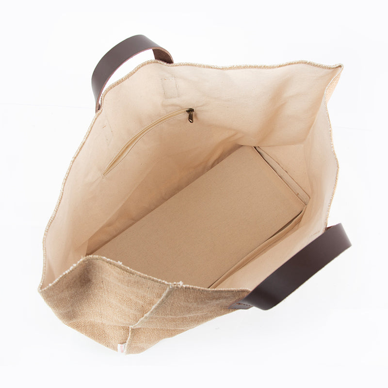 Natural Fiber and Leather Tote Bag