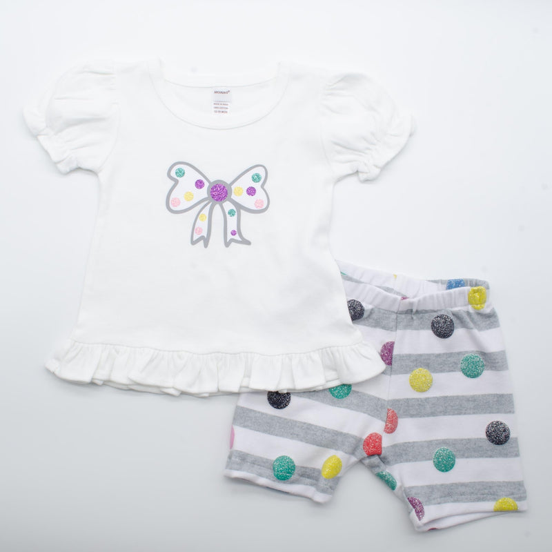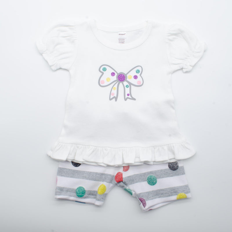 Our first collection for our Sweet as a Peach kid's brand is this clothing line for babies. This outfit features a ruffled t-shirt matched to a pair of shorts hand made by the Sew Dreams Come True team.