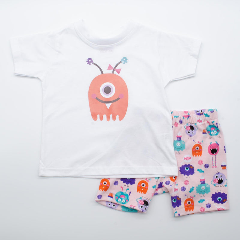 Our first collection for our Sweet as a Peach kid's brand is this clothing line for babies. This outfit features a t-shirt matched to a pair of shorts hand made by the Sew Dreams Come True team.