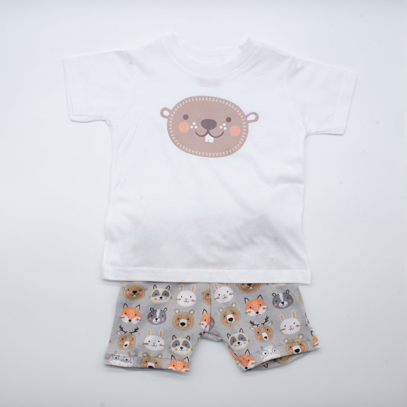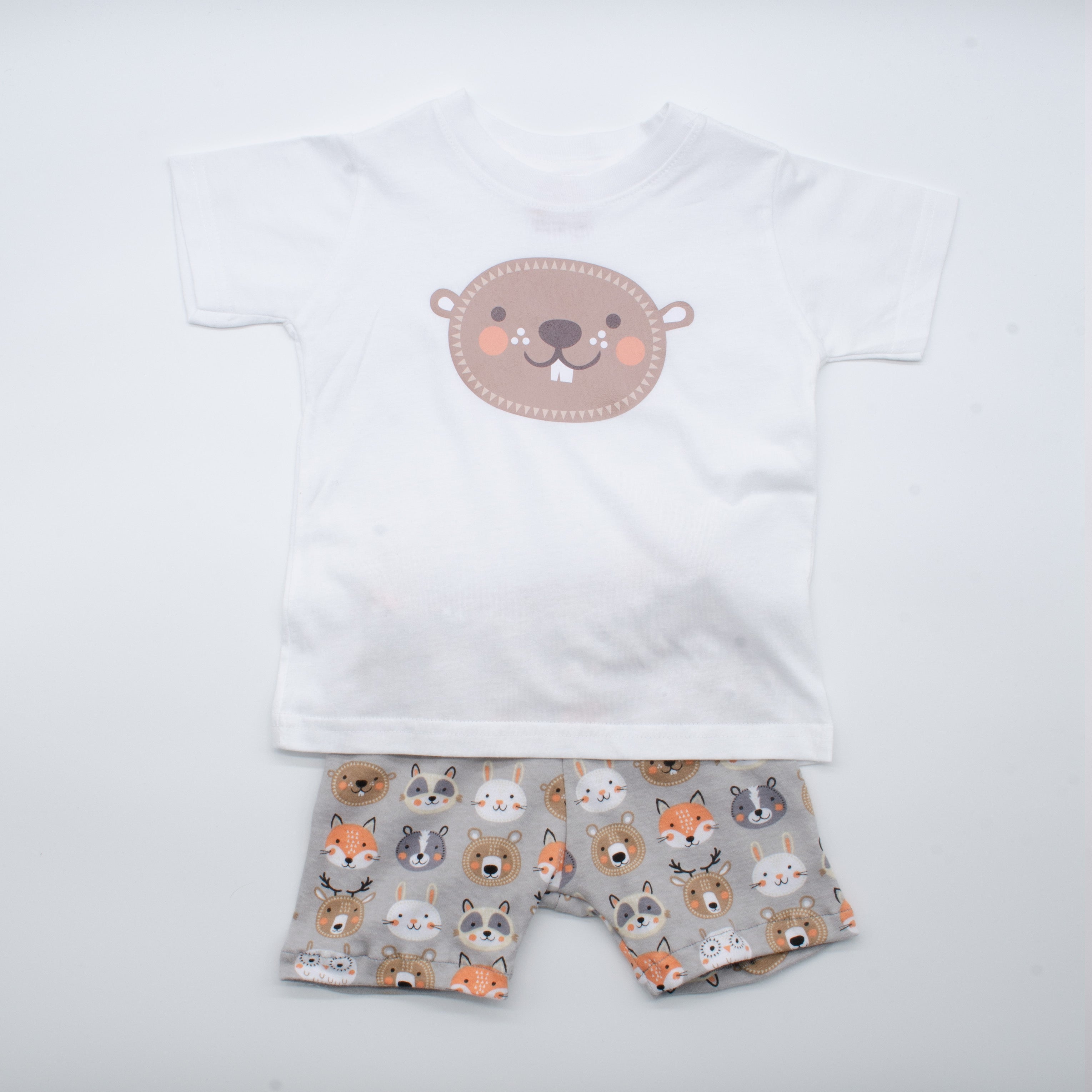 Our first collection for our Sweet as a Peach kid's brand is this clothing line for babies. This outfit features a t-shirt matched to a pair of shorts hand made by the Sew Dreams Come True team.