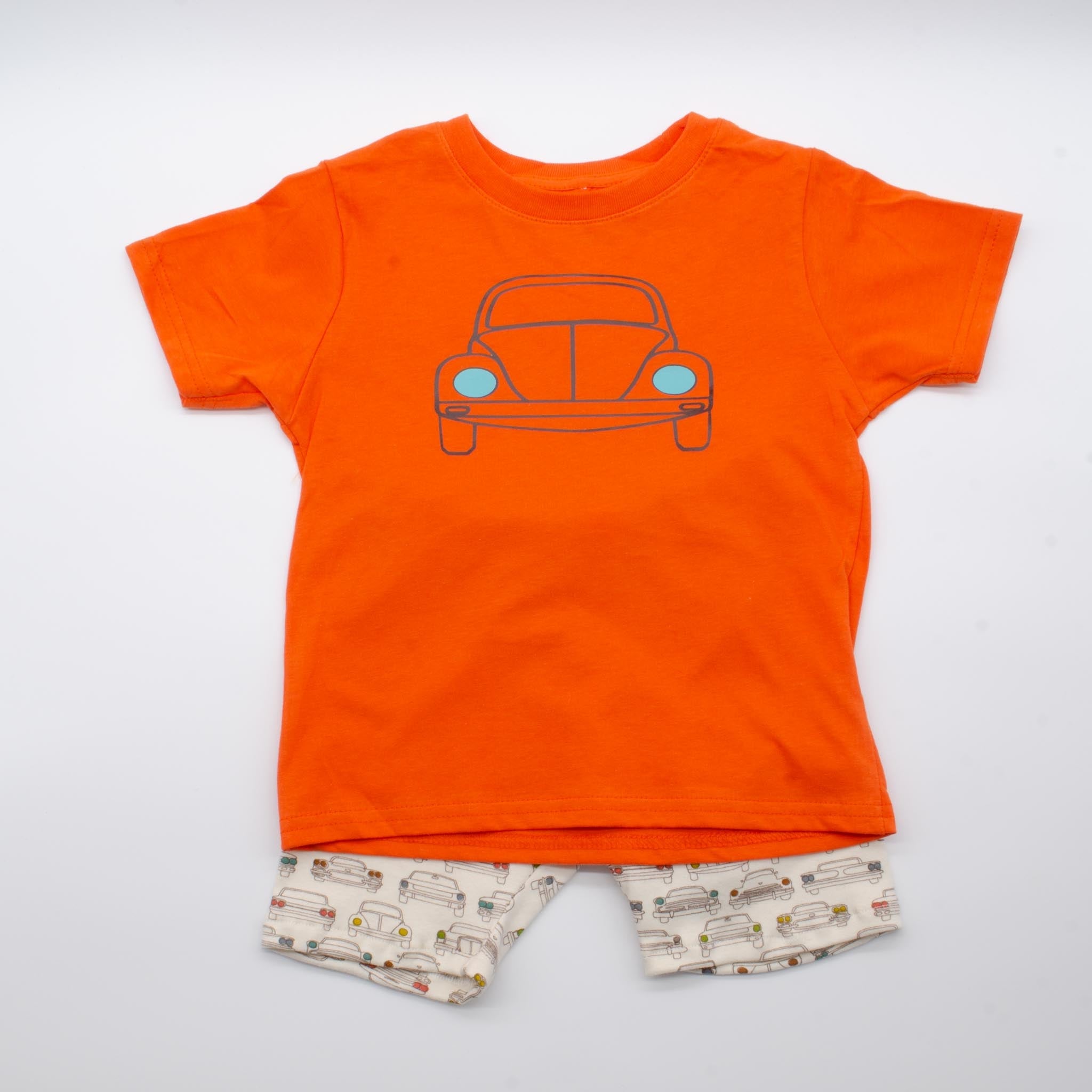 Our first collection for our Sweet as a Peach kid's brand is this clothing line for babies. This outfit features a t-shirt matched to a pair of shorts hand made by the Sew Dreams Come True team.