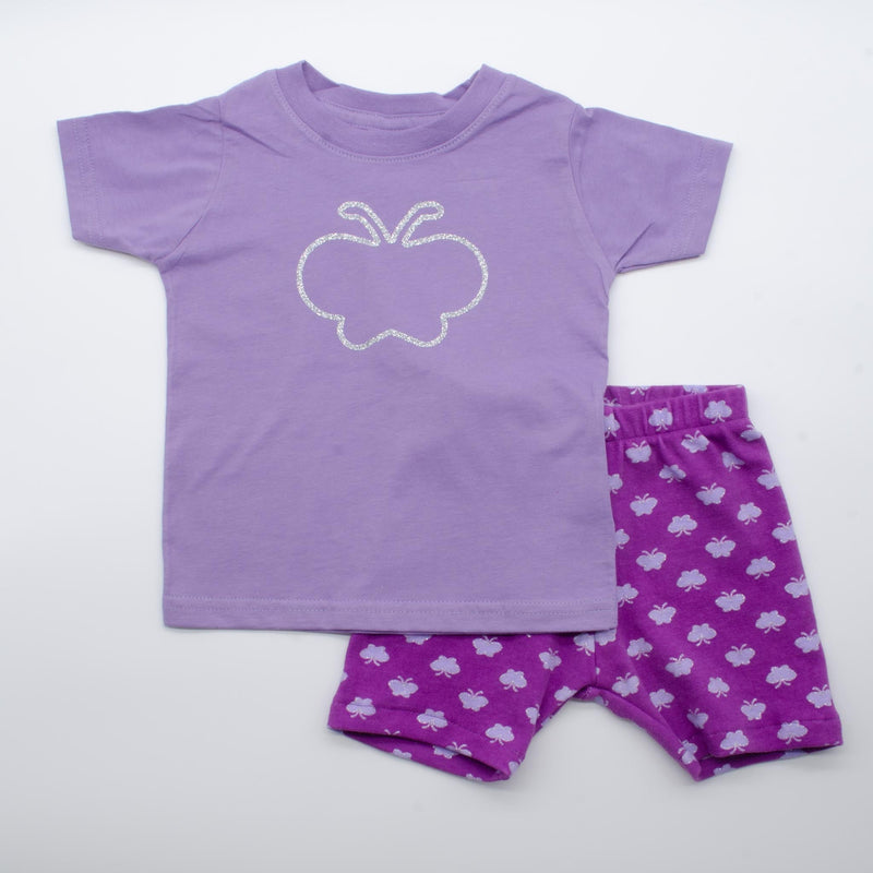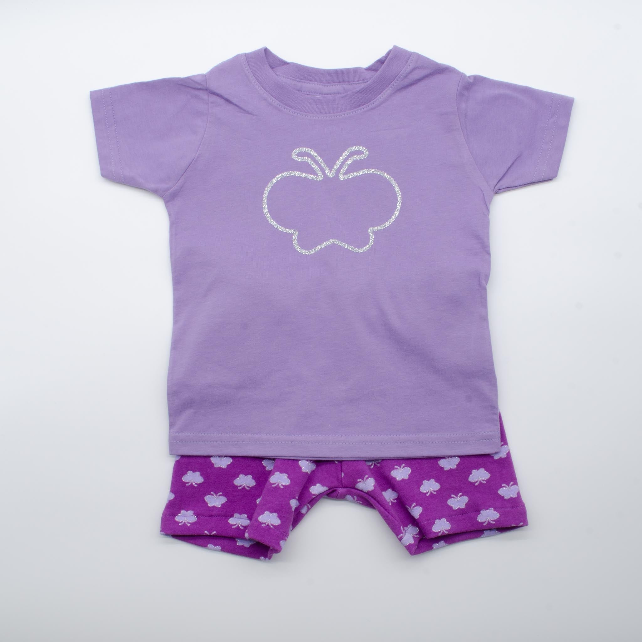 Our first collection for our Sweet as a Peach kid's brand is this clothing line for babies. This outfit features a t-shirt matched to a pair of shorts hand made by the Sew Dreams Come True team.