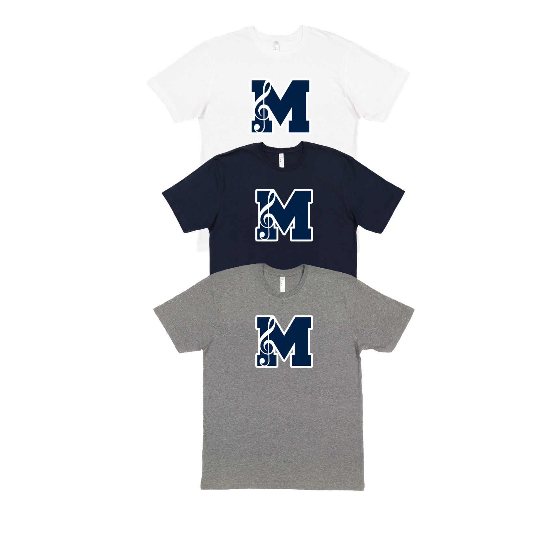 This super soft, fine jersey tee, is made from 100% cotton. The true to size fit is perfectly proportioned for comfort and is decorated with a 9 1/2” wide, custom printed, Marietta Band logo!
