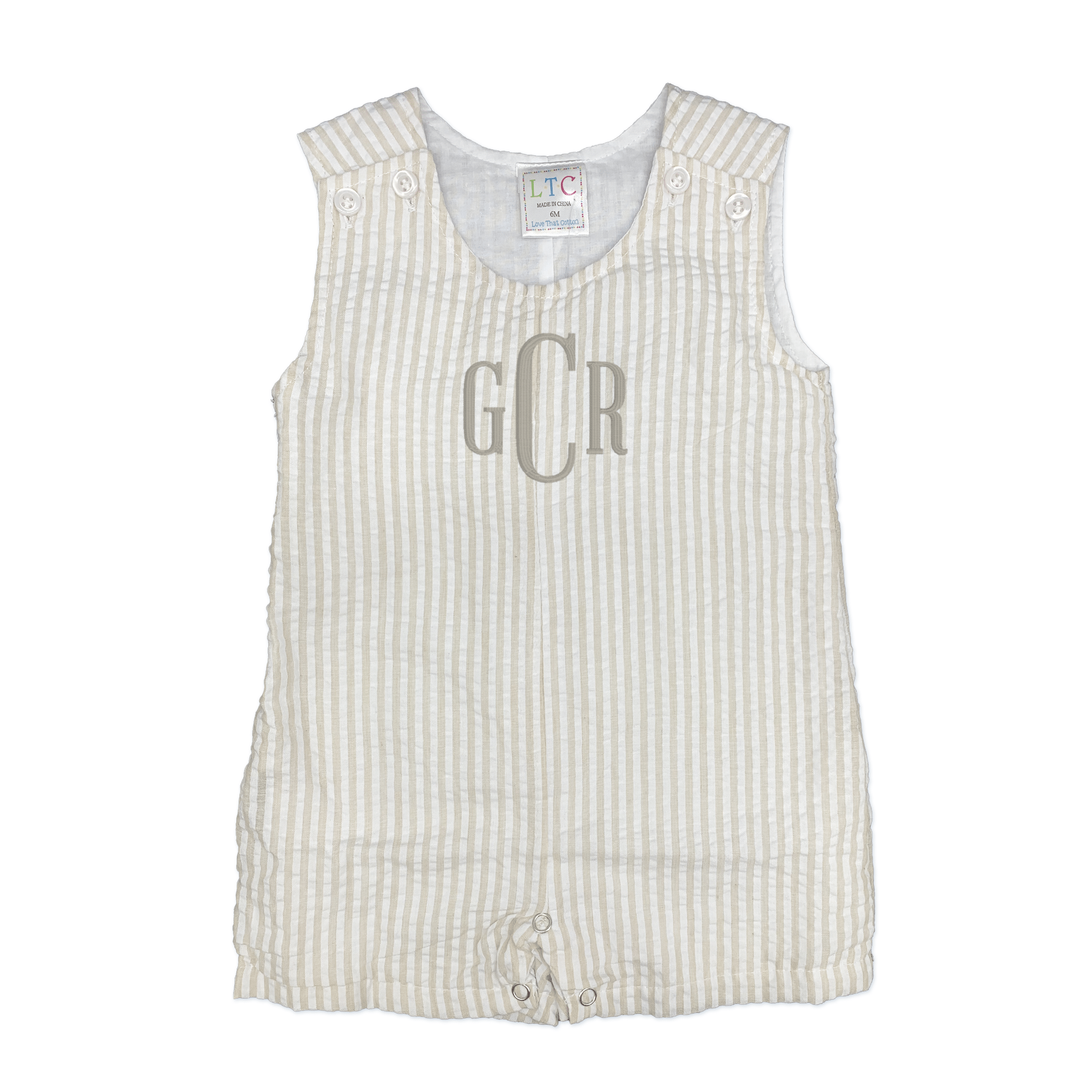 Prepare your little gentleman for spring and summer with our stylish Boys Tan Jon Jon from Sew Dreams Come True. Crafted from high-quality seersucker in a versatile tan hue, this Jon Jon combines comfort with timeless style.