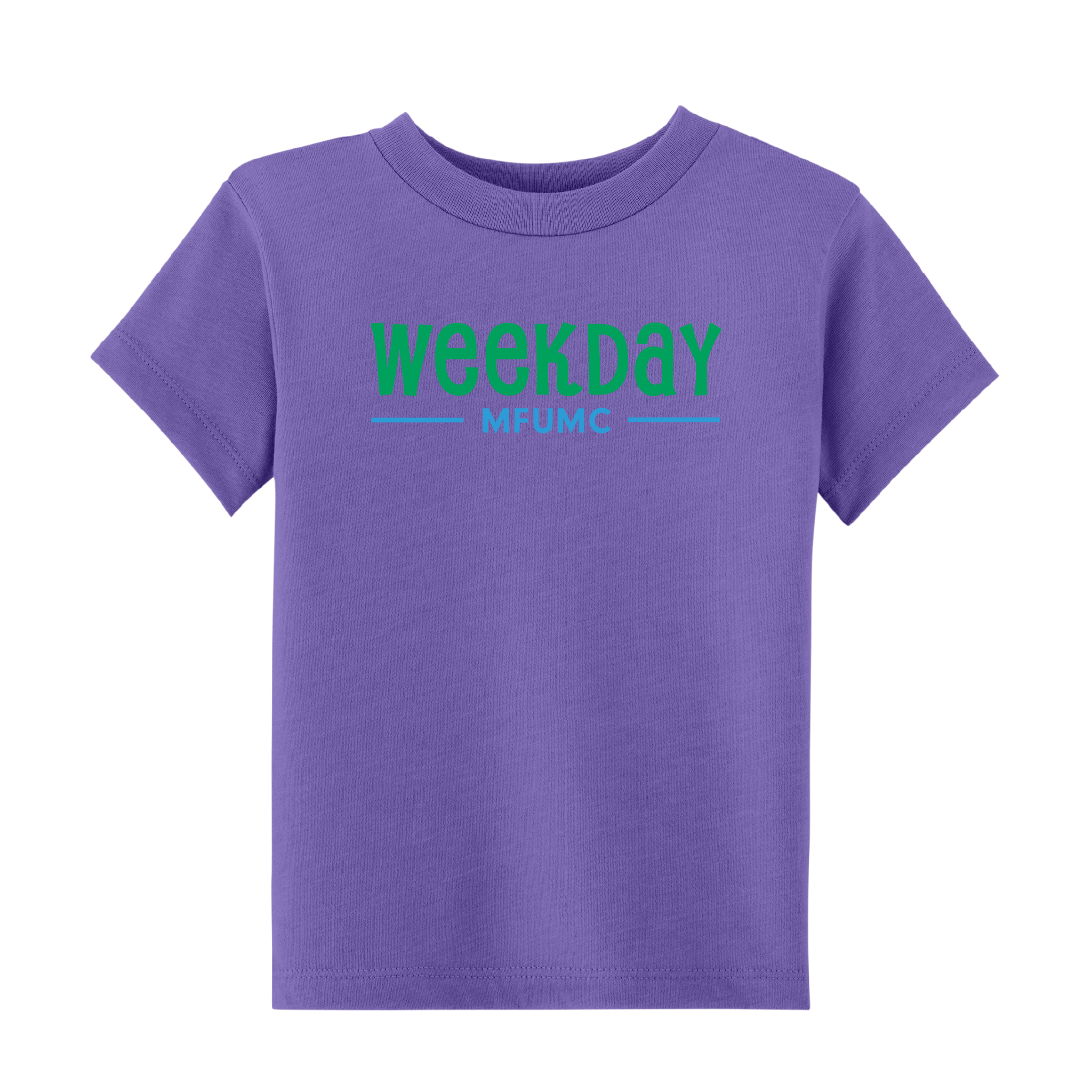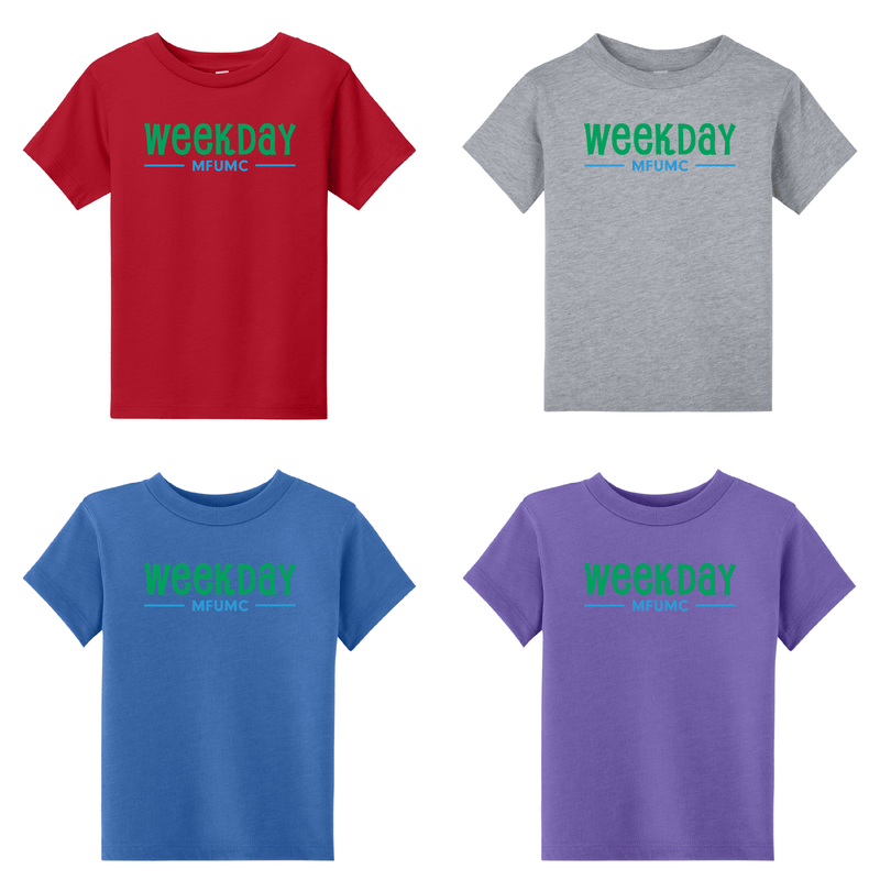 Our products include sizes 2T to 5/6T in Red, Athletic Heather, Heather True Royal, and Heather Team Purple. Machine wash and tumble dry.