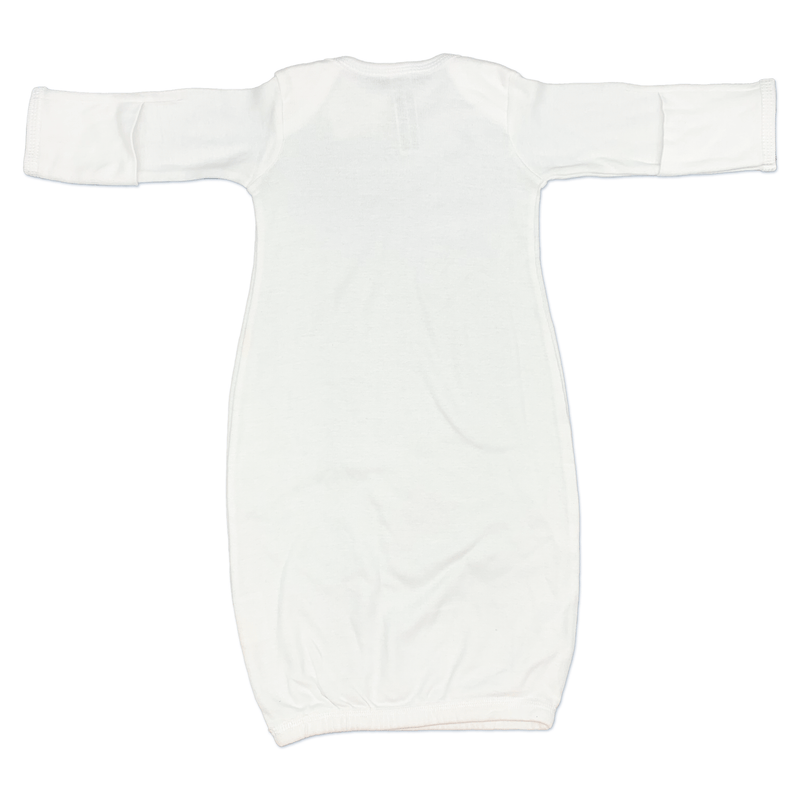 Ensure your newborn sleeps in comfort with our White Knit Gown from Sew Dreams Come True. Made from soft cotton, this gown features hand-covering mittens and an elastic hem for ease and warmth. Perfect for cozy nights and easy diaper changes.